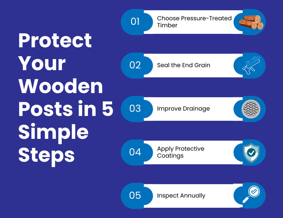 Correct installation plays a major role in protecting wooden posts from moisture damage. Even the best timber treatment cannot compensate for poor drainage.
