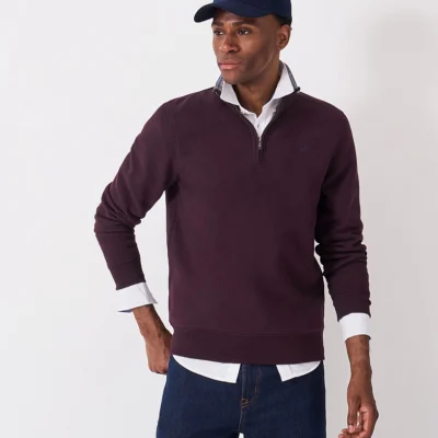 Crew Clothing Classic 1/2 Zip Sweat Mahogony